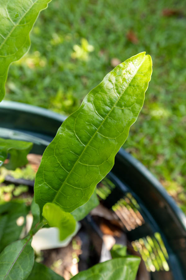 The vine produces glossy green leaves with three lobes and prominent veins. Its showy white and purple flowers develop into round or oval fruit with a thick rind and juicy, aromatic pulp. The plant prefers full sunlight and good drainage, growing well in warm, humid climates.