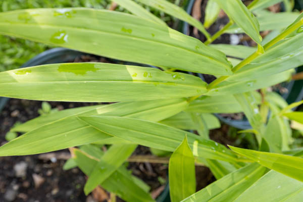Alpinia galanga – Galangal (ข่า), Thai medicinal rhizome with tall green stems and narrow aromatic leaves.