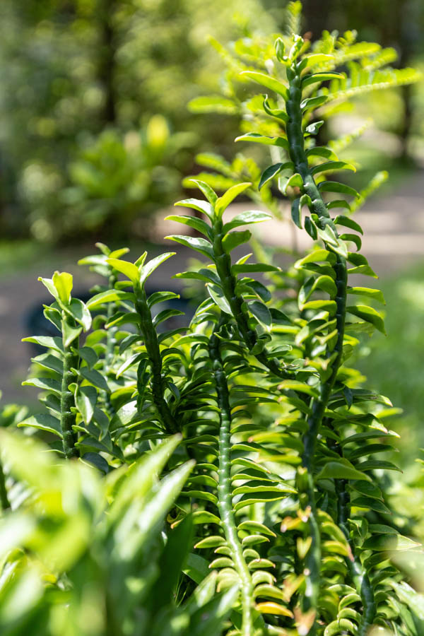 Euphorbia tithymaloides, commonly known as Devil’s Backbone, is a semi-succulent shrub recognized for its distinctive zigzag stems and glossy green leaves. Native to Central America, it has adapted well to tropical Asia and is valued both for its sculptural form and traditional medicinal use. The plant’s milky sap, typical of the Euphorbia genus, should be handled carefully as it can irritate the skin and eyes.