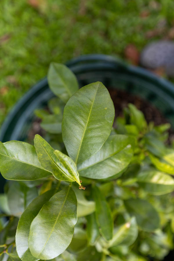 This dense, bushy shrub typically grows 2–5 meters tall. Leaves are glossy, dark green, and arranged alternately, with an oval shape and smooth margins. The plant produces small, star-shaped white flowers with an intense citrus fragrance, followed by small red berries that attract birds.